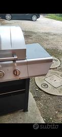 vendo barbecue 4 bruciatori con coperchio e termometro, due griglie in ghisa una liscia e una aperta. con griglia superiore scalda vivande. il barbecue è bello grande, è da giardino. completo di cappottina para intemperie. 100 euro per realizzo.