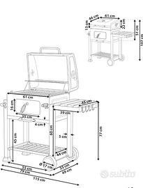 Barbecue a carbonella con ruote da giardino coperchio 2 griglie 2 ripianitermometro