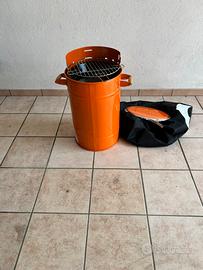 Barbecue da trasporto sia per auto che camper o roulotte. Dotato di maniglie per il trasporto, con dimensioni di 38 cm di diametro e cm 60 circo di altezza. Dotato di sacca di custodia.