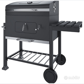 Barbecue a carbonella, usato circa una dozzina di volte, ben tenuto e sempre coperto dalla intemperie, dispone di prese d'aria laterali regolabili, termometro sul coperchio, 2 grosse ruote per spostarlo con facilità, ripiano laterale pieghevole, vassoio cenere estraibile, piano dei carboni ardenti con altezza regolabile, portina anteriore per verifica e controllo dei carboni ardenti, due griglie di cottura gemelle smontabili, con apribotiglie sul lato sinistro.