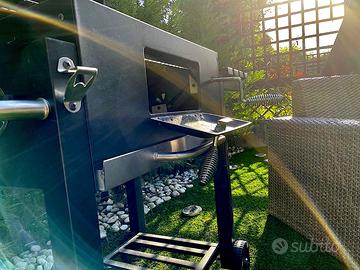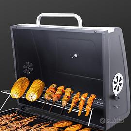 Vendo barbecue a carbonella FP-TECH 115x66x106 cm (24,5 kg), valore nuovo Amazon €159,99 (verifica online). Griglia inox SS304 60x44 cm + griglia calore 60x27 cm per arrostire e mantenere caldo cibo per 8-10 persone. Pulizia facile. Superficie carbone regolabile in altezza con manovella per controllo preciso calore. Capacità ~1,5 kg di carbone o carbonella (no legna). Prese d’aria laterali con apertura regolabile per evitare fiammate e bruciature. Termometro coperchio e sportello laterale per aggiunta carbone. Maniglia e ruote per spostamenti facili. Griglia con fori regolabili. Ripiano laterale porta vivande 47x38 cm + ganci porta utensili (es.: forcone, mestolo). Ripiano inferiore 47x62 cm per carbonella e accessori. Grande cassetto raccogli cenere estraibile e lavabile. Apribottiglie frontale. In omaggio: telo copertura impermeabile. Per correttezza segnalo che ha una piccola ammaccatura sull'angolo del coperchio, ben visibile nell'ultima foto, ma facilmente raddrizzabile con pochi colpi di martello. Prezzo assolutamente non trattabile, non richiedere sconti! - Offro a parte accenditore elettrico Tristar BQ-2819 (800W, supporto sicuro, riscalda carbonella in 15 min) a €10,00 (valore nuovo Amazon €25,19, verifica online). Contatti: Luisa 3472374900, Alessandro 3771492307.