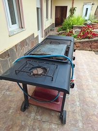 Si vende barbecue a gas, 3 fuochi (fornello, lastra in ghisa, pietra lavica) perfettamente funzionante.