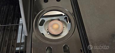Barbecue a gas 2 fuochi usato pochissimo con Raccoglitore dei grassi, coperchio con termostato,accensione elettronica, ruote per spostarlo facilmente, terzo fuoco per pentole o piastra( compresa) Ottimo per terrazzi o balconi