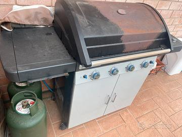 Vendo barbecue a gas con 4 fornelli rettangolari, piastre in pietra lavica piu bombola semipiena. Un po consumata dal tempo ma ben funzionante in tutto. Visto e piaciuto.