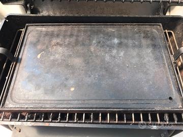 Causa trasferimento vendo barbecue a gas con coperchio/cappa apribile e richiudibile con due ripiani appoggia vivande/vassoi (uno per ogni lato).