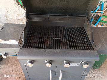 barbecue a gas 4 fuochi, può funzionare con e senza pietra lavica, fornello laterale pe r pentole e padelle compreso di pietra lavica e tubo con regolatore