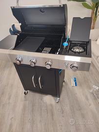Barbecue a gas 4 fuochi usato solo una volta, 20 giorni di vita Vendo per incapacità mia nell'uso Completo di tubo con valvola bassa pressione, telo di copertura originale Pagato 330€ Prezzo Leggermente trattabile
