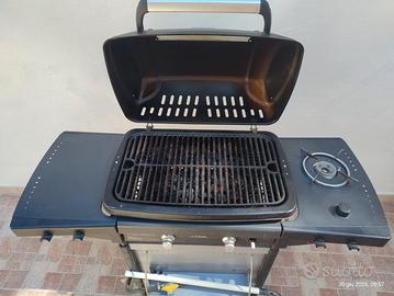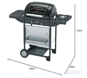 Specifiche: coperchio in acciaio con finestra e termometro (per grigliare in modo indiretto); altezza della cottura: 90 cm; peso 26 kg