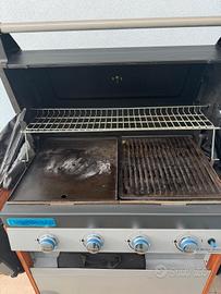 LA COMBINAZIONE DI BRUCIATORI POTENTI ED ELEGANTE CARRELLO IN LEGNO, GENERA LA GAMMA CAMPINGAZ® WOODY. ABBINAMENTO DI ACCIAIO VERNICIATO, LEGNO E DESIGN ORIGINALE, I NUOVI 4 SERIES WOODY SONO I BBQ IDEALI PER CHI RITIENE LO STILE E IL DESIGN DI PARI IMPORTANZA ALLE PRESTAZIONI DI COTTURA. TUTTI I BBQ DI QUESTA GAMMA SONO DOTATI DI UNA DOPPIA SUPERFICIE DI COTTURA COMPOSTA DA GRIGLIA E PIASTRA, PER SODDISFARE TUTTI I TIPI DI APPETITO. CARATTERISTICHE TECNICHE: • DIMENSIONI SUPERFICIE DI COTTURA: 78 X 45 (3.500CM²) • BRUCIATORI: ACCIAIO INOX • NUMERO DI BRUCIATORI: 4 • POTENZA: 12.8 KW • CONSUMO GAS: 931 G/H • INSTACLEAN™ SYSTEM: SI • MATERIALE SUPERFICIE DI COTTURA: ACCIAIO SMALTATO • CONFIGURAZIONE SUPERFICIE DI COTTURA: GRIGLIA / PIASTRA • CULINARY MODULAR: OPTIONAL • GRIGLIA ARTICOLATA: SI • PREDISPOSIZIONE GIRARROSTO: SI • ALTEZZA DI COTTURA: 85 CM • ACCENSIONE: PIEZO • TERMOMETRO: SI • RIPIANI LATERALI PIEGHEVOLI: 2 • MATERIALE COPERCHIO: ACCIAIO VERNICIATO • MATERIALE CARRELLO: LEGNO D'ACACIA • FRONTALE: ACCIAIO VERNICIATO • RUOTE: 2 • SUPPORTO BOMBOLA: SI • PESO: 47,2 KG • DIMENSIONI IN CM (L X P X H): 141 X 64,2 X 115,1 perfetto stato, accesso 4/5 volte nell' arco dell anno di acquisto.