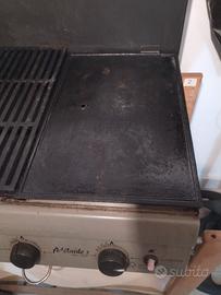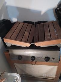 vendo barbecue Campingaz Adelaide Woody 3, usato ma ben conservato. perfettamente funzionante. con 3 bruciatori sostituiti da 1 anno e ben conservati. totale elementi piano cottura: 3 Fornello(i) Potenza totale: 14000 W va bene sia a Gas di petrolio liquefatto (GPL) + Metano. composto da doppia superficie di cottura in ghisa composta da griglia e piastra, soddisfa tutti i tipi di cottura. è presente al disotto dei bruciatori una teglia che raccoglie i grassi e le parti di cibo cadenti, pertanto è usabile anche all'interno o in balconi e terrazze.