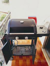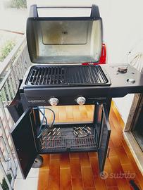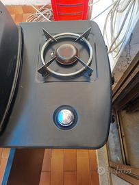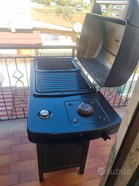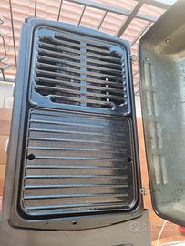 Barbecue a gas con due piastre, compreso un fornello più supporto poggia utensili. Usato solo 5 volte