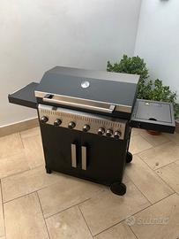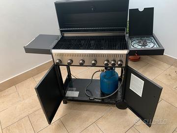 Barbecue con 6 bruciatori ed un fornello,praticamente nuovo usato solo 2 volte comprato 3 mesi fa da leroy merlin pagato 490€.do anche il telo comprato a parte bombola tubo e riduttore di pressione