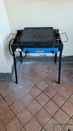Piastra in ghisa, combinata con un fornello tradizionale per la massima versatilità di cottura.