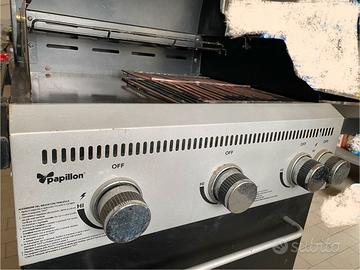 BARBECUE PAPILLON TRE BRUCIATORI PIU FORNELLO SUPERFICIE GRIGLIA 55CM X50CM, LARGHEZZA TOTALE 125CM COMPRESI APPOGGI LATERALI USATO 2/3 VOLTE VENDO PER INUTILIZZO.