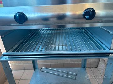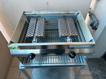 Barbecue a gas gpl (bombola) made in Italy prodotto artigianale inox Dimensioni 55x45 cm circa Griglia utile 48x40 cm Altezza tavolo 68 cm Altezza totale 100 cm Senza fumi di cottura , 2 fuochi Piastra lavica 50x40 cm Usato circa 10 volte solo su piastra lavica, Mai usato su griglia inferiore Vendo causa inutilizzo