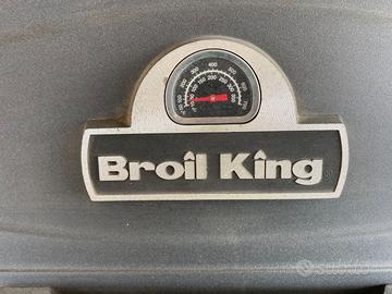 Vendo barbecue a gas marca Broil King come da foto, usato ma perfettamente funzionante (accensione piezoelettrica no). Piastra di cottura cm. 54x36 oltre ad un fornello esterno, coperchio con termometro e supporto per spiedo. Sottostante vano per bombola gas (non compresa ma eventualmente disponibile). Ripiani laterali pieghevoli per un minore ingombro. Misure massime 133x125x59. Disponibile solo ritiro a mano zona Legnano (MI).