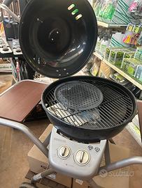 Questo barbeue sferico a gas di Outdoorchef ha un carrello brevettato con piedini regolabili per superfici irregolari e due grandi ruote per spostarlo facilmente.
