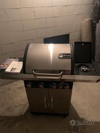 Bruciatori: Dotato di quattro bruciatori principali in acciaio inox, ciascuno con una potenza di 3,5 kW, per un totale di 14 kW. Include anche un bruciatore laterale da 3 kW, ideale per preparare salse o contorni.