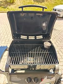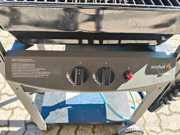 Sochef Saporillo Barbecue, Nero/Grigio usato. Dimensioni prodotto 103P x 125l x 46H cm Sistema di Cottura con pietra lavica. Bruciatori in acciaio inossidabile. Ripiani laterali pieghevoli Area di cottura: 51 x 37cm Indicatore di temperatura. Telo copertura per barbecue. È compreso di bombola del gas da 5.8 kg usata.