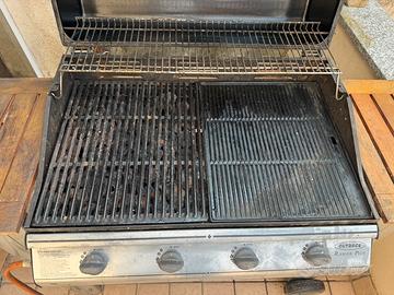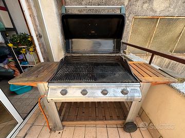 Vendo per inutilizzo barbecue a gas Outback Ranger Plus, un classico per gli amanti della griglia, noto per la sua robustezza e l'ampia superficie di cottura. Il barbecue è usato e presenta i normali segni del tempo e dell'usura (come visibile in foto), ma è una macchina solida e pronta all'uso. CARATTERISTICHE TECNICHE: • Configurazione Fuochi: 4 bruciatori indipendenti ad alte prestazioni che permettono di gestire diverse zone di calore contemporaneamente. • Superficie di Cottura: Sistema misto con metà griglia e metà piastra piena in ghisa, ideale per cucinare contemporaneamente carne, verdure, formaggi e pesce. • Cappa Forno: Coperchio smaltato verde con termometro integrato per cotture indirette e monitoraggio costante della temperatura. • Struttura: Carrello robusto con ripiani laterali e ripiano inferiore in legno listellato. • Mobilità: Dotato di ruote per facilitare lo spostamento sul balcone o in giardino. STATO DELL'OGGETTO (Leggere bene): • Funzionamento: Il sistema a gas e i bruciatori sono funzionanti. • Condizioni estetiche: Presenta segni di ruggine superficiale sulle parti metalliche e il legno dei ripiani è leggermente scolorito dall'esposizione solare, ma strutturalmente integro. • Manutenzione: Necessita di una pulizia profonda delle griglie e dei diffusori di calore per tornare al massimo del suo potenziale. • Accessori: Tubo del gas incluso. SOLO RITIRO IN ZONA