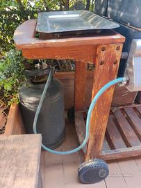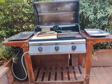 barbecue a gas portatile 3 fuochi pietra lavica o levandola su fiamma viva su griglia con campana di chiusura forno fino 350 gradi completo di bombola gas e accessori per la pulizia compreso forchettone e piatti in acciaio inossidabile su ruote trasportabile in acciaio inossidabile e struttura in legno garantito per esterno pioggia o intemperie 3 fuochi con accensione automatica da 3 manopole esterne . visibile presso abitazione terrazzo esterno per prova e dimostrazione su appuntamento in qualsiasi giorno e ora luogo di ritiro presso agenzia bolcato via Lombardia 18 Arzignano telefono 3355607940
