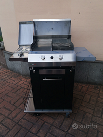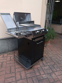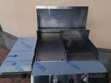 È arrivato! meraviglioso barbecue a gas (gpl /metano) tutto acciaio, tutto italiano.. 2bruciatori in acciaio con paravento, accensione piezoelettrica con batteria, stop-gas spegnimento fiamma, termometro temperatura modalità forno, diffusori di calore estraibili inox, piano cottura:500 x450mm, manopole inox, sistema di pulizia on vassoio estraibile e contenitore usa e getta, carrello struttura acciaio inox, colorato, con vano portabombola e accessori, vassoi laterali pieghevoli, optional fornello laterale,...