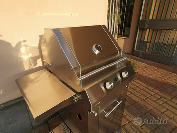 -Barbecue Sunny con 2 bruciatori in acciaio inox con paravento