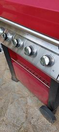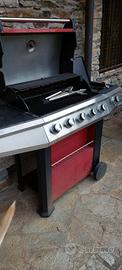 Barbecue a gas, 5 fuochi per le griglie, 1 fuoco come fornello per cuocere con padelle o pentole. Compreso nel prezzo una bombola di gas piena e una quasi esaurita ( cauzioni da riscuotere in caso di reso dei vuoti nei centri abilitati ). Vendo per poco utilizzo. No permute con qualsiasi altro oggetto. Da ritirare sul posto, nessuna possibiltà di consegna o spedizione.