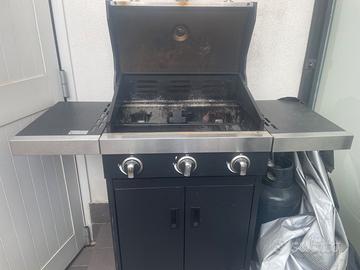 Vendo per inutilizzo robusto barbecue a gas, perfetto per grigliate in giardino o sul terrazzo. Il modello è dotato di 3 bruciatori indipendenti con accensione rapida. Il barbecue è perfettamente funzionante. Come visibile dalle foto, presenta normali segni di utilizzo all'interno della camera di cottura e sulle griglie (usato una decina di volte), ma la struttura esterna e i bruciatori sono in buone condizioni. Nel prezzo compreso anche il telo di copertura e la bombola a gas.