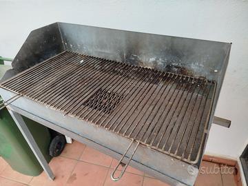 barbecue a legna/ carbone, usato 3/4 volte in tutto,la struttura e in scatolato zingato,lamiere zingate, la griglia in acciaio inox, le misure sono : 1 m x 50 cm, munito di ruote, lo vendo per cambio barbecue a gas GPL.