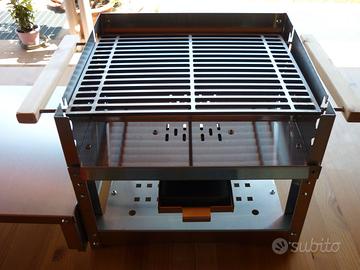 Utilizzabile sia come barbecue fisso, installando tutti i componenti forniti, oppure come barbecue da tavolo e barbecue portatile da picnic, non installando le gambe lunghe, ma solo le prolunghe.
