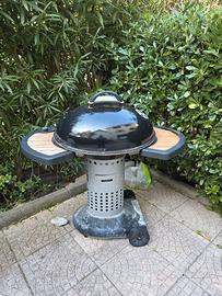 Barbecue usato in metallo con griglia e coperchio – Cassettino cenere e aerazione. Poggia-teglie in doghe di legno. Piedistallo con ruote per prato. Opzione di accensione a gas con piezoelettrica. Vendo a € 30 escluso trasporto. Zona aeroporto pressi CONAD. Per info tel. 351-5720840