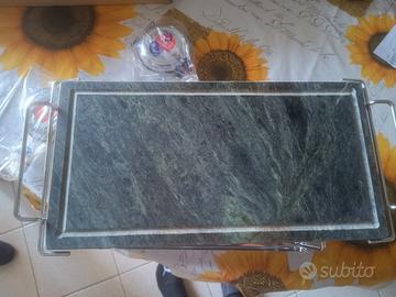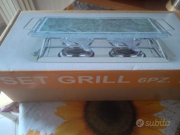 Pietra per grigliare con contenitore per il trasporto in acciaio inossidabile e due fornelli. Misure pietra cm 19 x cm 37 Nuovo