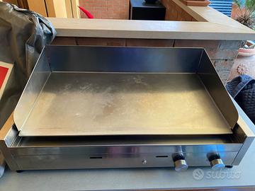 Barbecue da appoggio Airone serie 80 in acciaio inox 304 . Potenza 10 Kw superficie di cottura 750 x 420 mm. Dimensioni 820x550x180. Dotato di para schizzi e frangivento. Usato molto poco