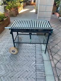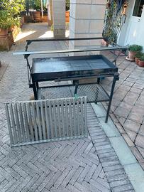 Barbecue in acciaio inox alimentare regolabile in altezza con base in mattoni refrattari dotata di maniglie per spostarlo. Preferisco consegna a mano. Contatto telefonico 3397883017 Alessandro