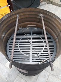 Vendo barbecue /affumicatore a carbone fatto artigianalmente (simil pit-barrell). Con accessori: griglia, ganci per appendere la carne, cestello per carbone, termometro, presa d'aria regolabile, gancio per cestello. Barile da 200lt Vernice 3 strati anticalore ceramicata Misure : h 100cm x 60cm