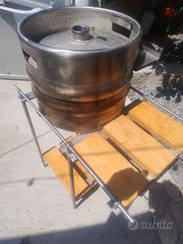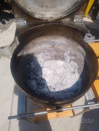 barbecue artigianale in acciaio inox ricavato da un fusto di birra , usato diametro 40 cm