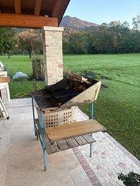 Vendo bbq di costruzione ARTIGIANALE. Piano superiore in acciaio INOX spesso e resistente. Costruito su ruote per essere comodamente e facilmente spostato. Spazioso vano porta legna inferiore. Ripiano laterale completamente ripiegabile (soluzione salvaspazio nel rimessaggio). Nel prezzo solamente il bbq (No griglie - No porta braci ) Possibilità di eventuale consegna nei paesi limitrofi.