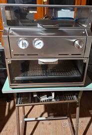 Barberix barbecue a fiamma rovescia niente fumo niente odori sia per esterno che per interno, come nuovo completo di accessori extra, griglia a quadroni, in ghisa, in accaio tondino, scaldavivande,doppia corsia per doppia infornata,affumicatore, manuali,ricettari, ecc tutto in acciaio inossidabile 18/10, valore oltre 2000,00 €