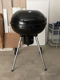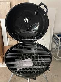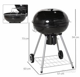 Barbecue BBQ a Carbonella con Termometro Doppia Griglia Ripiano Inferiore 2 Ruote Metallo 57x63x94 cm Nero e argento