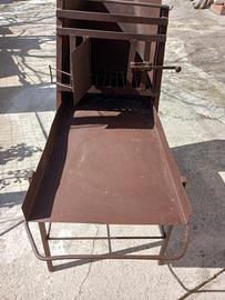 Barbecue a legna in ferro, con camera di combustione e griglia. Dimensioni: 105x55x70 cm. La camera di combustione misura 40×40