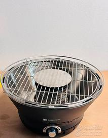 Grill a carbone senza fumo, da esterno, facilmente trasportabile e riponibile grazie alla custodia in dotazione. Dispone della funzione barbecue con o senza fumo, e di un sistema integrato che mantiene il corpo del barbecue freddo. L’alimentazione può avvenire tramite quattro batterie AA o caricatore USB (non incluso).