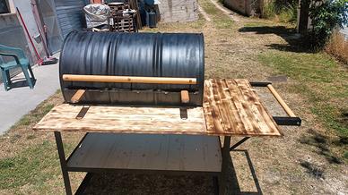 barbecue nuovo, appena realizzato. struttura robusta in ferro da 2,5 mm, ampi ripiani multiuso, uno altezza griglie e uno sotto buono come dispensa. griglia da 80 cm.