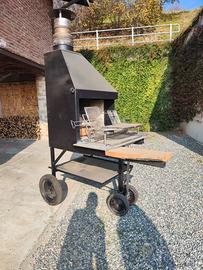 Vendo barbecue costruito artigianalmente in ottimo stato, carrello compreso per trasporto, materiale in mattone refrattario