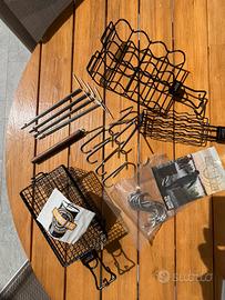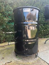 BBQ PIT BARREL COOKER XL barbecue a carbone completo di accessori. 2 griglie (una fissa + una apribile a metà), spiedi, ganci, cestello salsicce/hot-dog, cestello x patate/verdure, cestello per pannocchie, telo copertura impermeabile