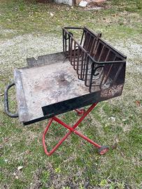 Vendo barbecue in ferro con carrello e ruote, facile da spostare. Struttura robusta, con griglia laterale e paravento.