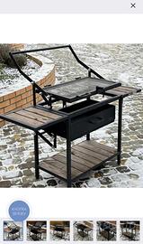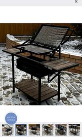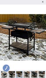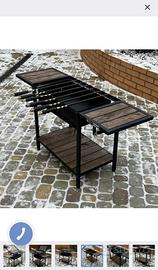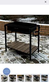 Parametri generali del barbecue: lunghezza 120 cm, larghezza 40 cm, altezza 91 cm. Parametri della camera di cottura: lunghezza 62 cm, larghezza 33 cm, altezza 12 cm. Il barbecue è realizzato su ordinazione, fatto a mano.