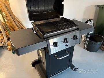 Vendo barbecue a gas Broil King modello Royal 320 con due griglie e una piastra in ghisa, tre bruciatori, ripiani richiudibili laterali, coperchio con termometro e telo di copertura. In ottime condizioni. Solo ritiro a mano.