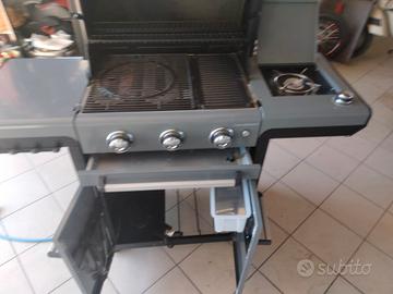 Ciao, vendo barbecue campingas PREMIUN 3 SERIES compreso di telo copri barbecue, piatto pizza, piatto x cuocere pollo intero, guanto forno e grigliata x pulire piastra e griglia. Usato 3 volte.
