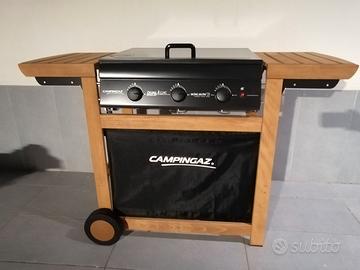 la doppia superficie di cottura con griglia e piastra permette di soddisfare tutti i tipi di appetito ed è riscaldata in modo uniforme e prolungato grazie ai 3 bruciatori in ghisa con potenza di 14.000 W;